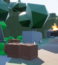 In this final enemy encounter of the level I wanted to offer the player a challenging experience while maintaining it fair. I opted for creating multiple paths, where players can reach the goal and strategically hide and attack the enemies. Some of the containers can also be used for verticality.